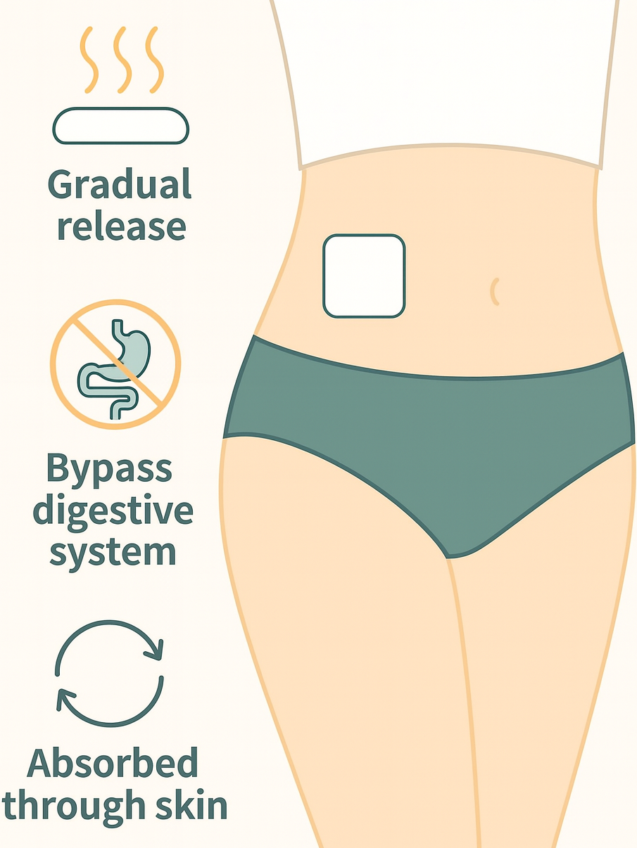 This transdermal patch gradually releases natural ingredients throughout the day.